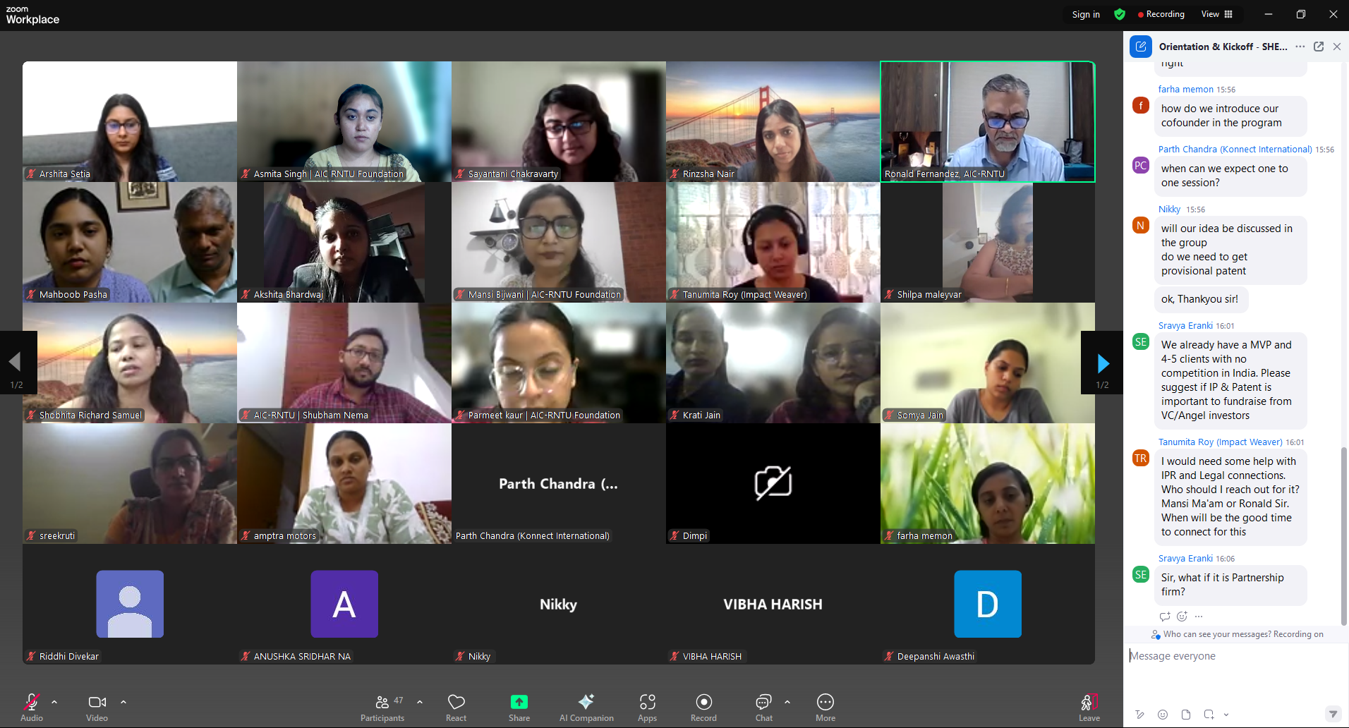 The session commenced with an orientation led by Ms. Mansi Bijwani, Incubation Officer at AIC-RNTU Foundation. She provided an overview of the SHEvolution -Ideate Cohort 2025, outlining the objectives of the program and giving participants clarity on the roadmap ahead.
