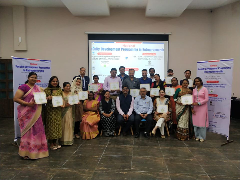 Learning is a lifetime process and to foster the same, we actively associated with Entrepreneurship Development Institute of India, Ahmedabad and NSTEDB, Department of Science & Technology. Govt. of India to organize 12 Days National Faculty Development Program in Entrepreneurship at AIC-RNTU Foundation from 17th to 28th Feb 2020.