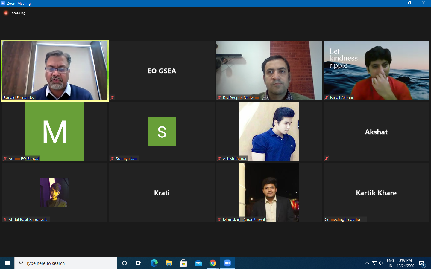 AIC-RNTU partnered as Knowledge Partner with EO-GSEA and conducted the mentoring session on Basics of Marketing and Sales for EO-GSEA Participants Business Model for Startups