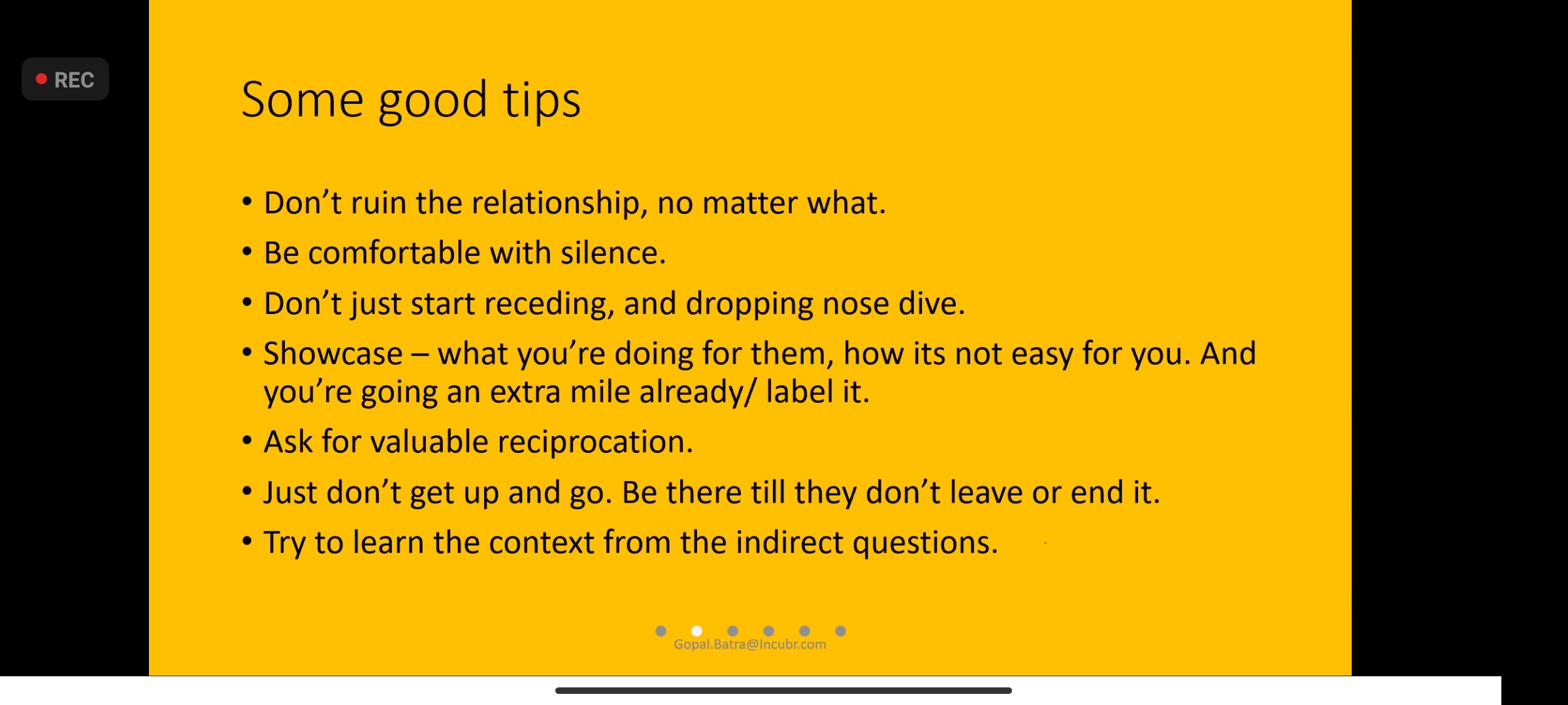 The sessions covered the do's and dont's for startups while negotiating on different ends