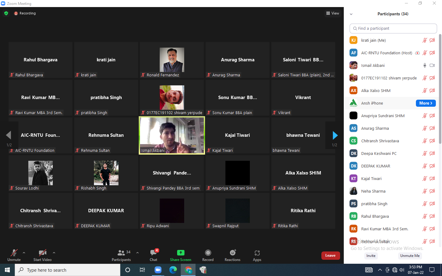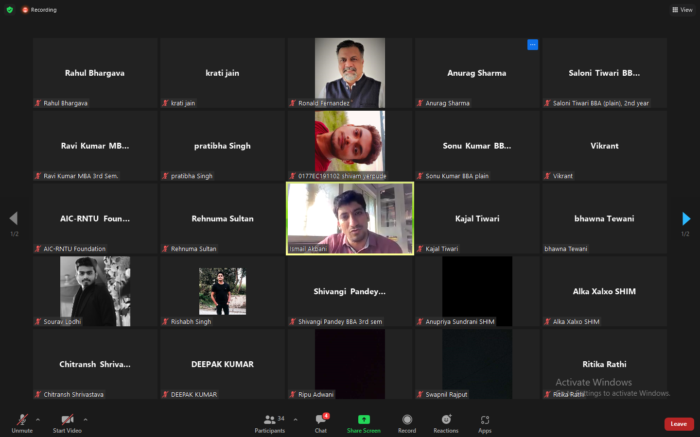 AIC-RNTU partnered as Knowledge Partner with EO-GSEA and conducted the mentoring session on Basics of Marketing and Sales for EO-GSEA Participants Business Model for Startups