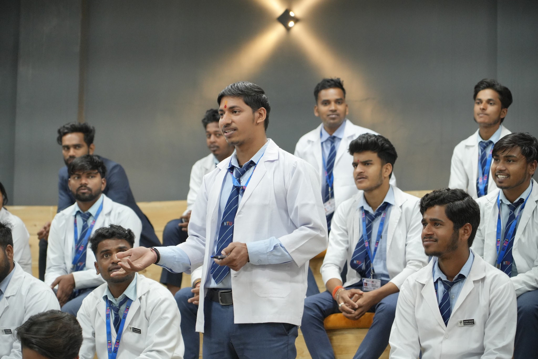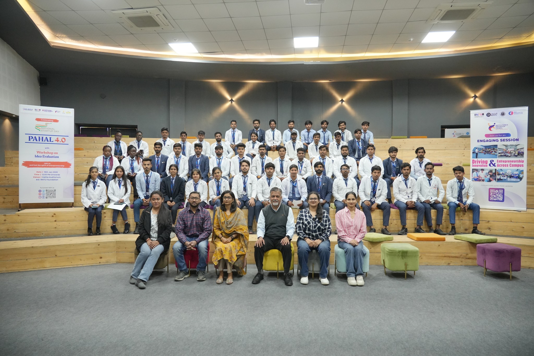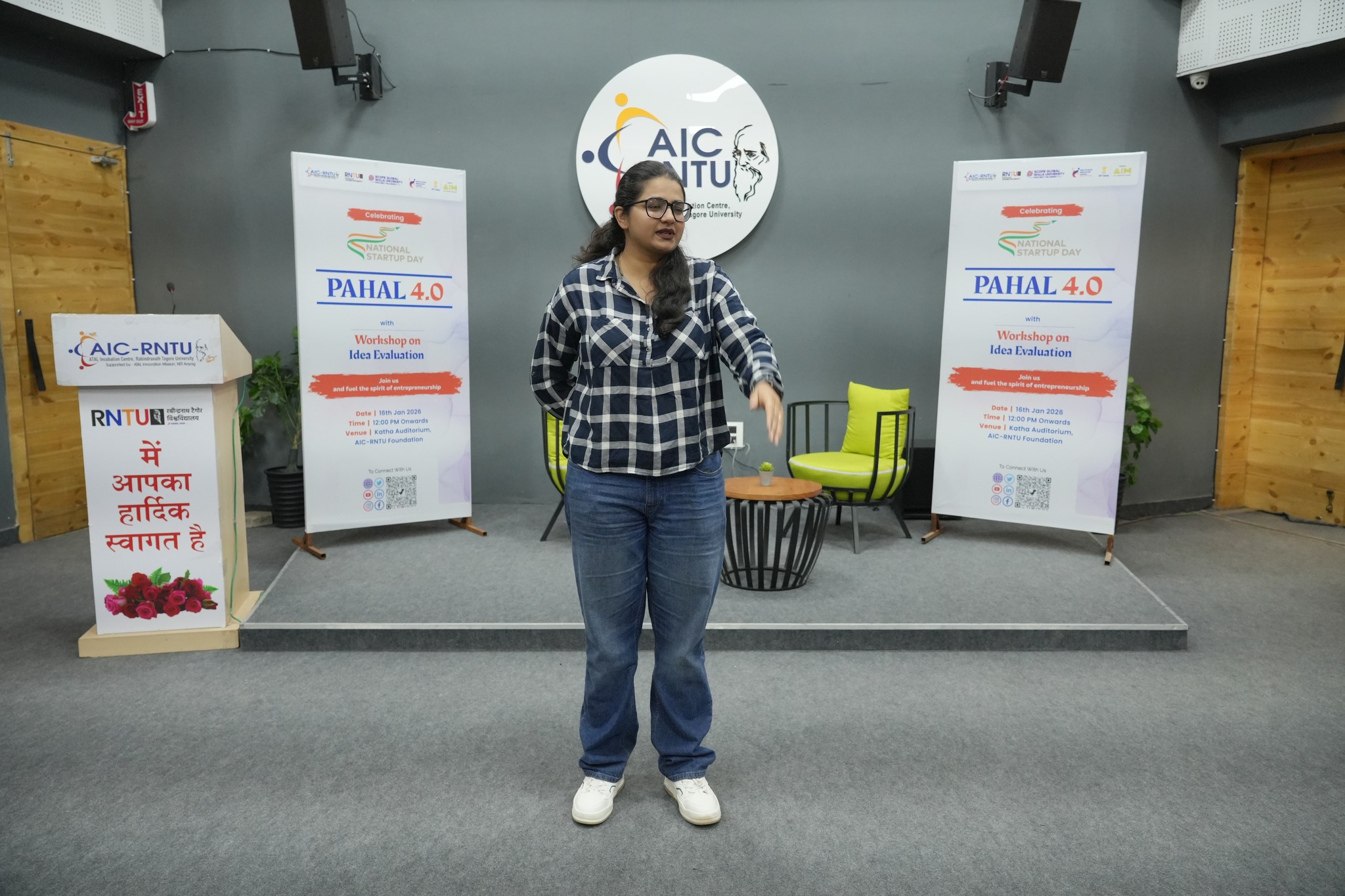 National Startup Day Pahal 4.0 at AIC–RNTU Foundation featured real healthcare startup journeys shared by Incubation Manager Ms. Krati Jain, followed by a hands-on brainstorming challenge that encouraged students to identify gaps, build teams, and think like impact-driven founders.